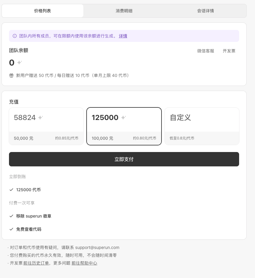 - 支持团队与个人两种充值方式,同一页面轻松切换。