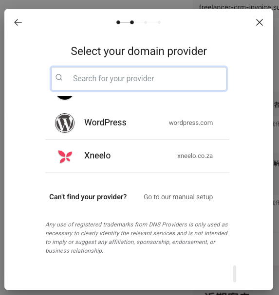 - 如果您的域名提供商在列表中,可以直接选择