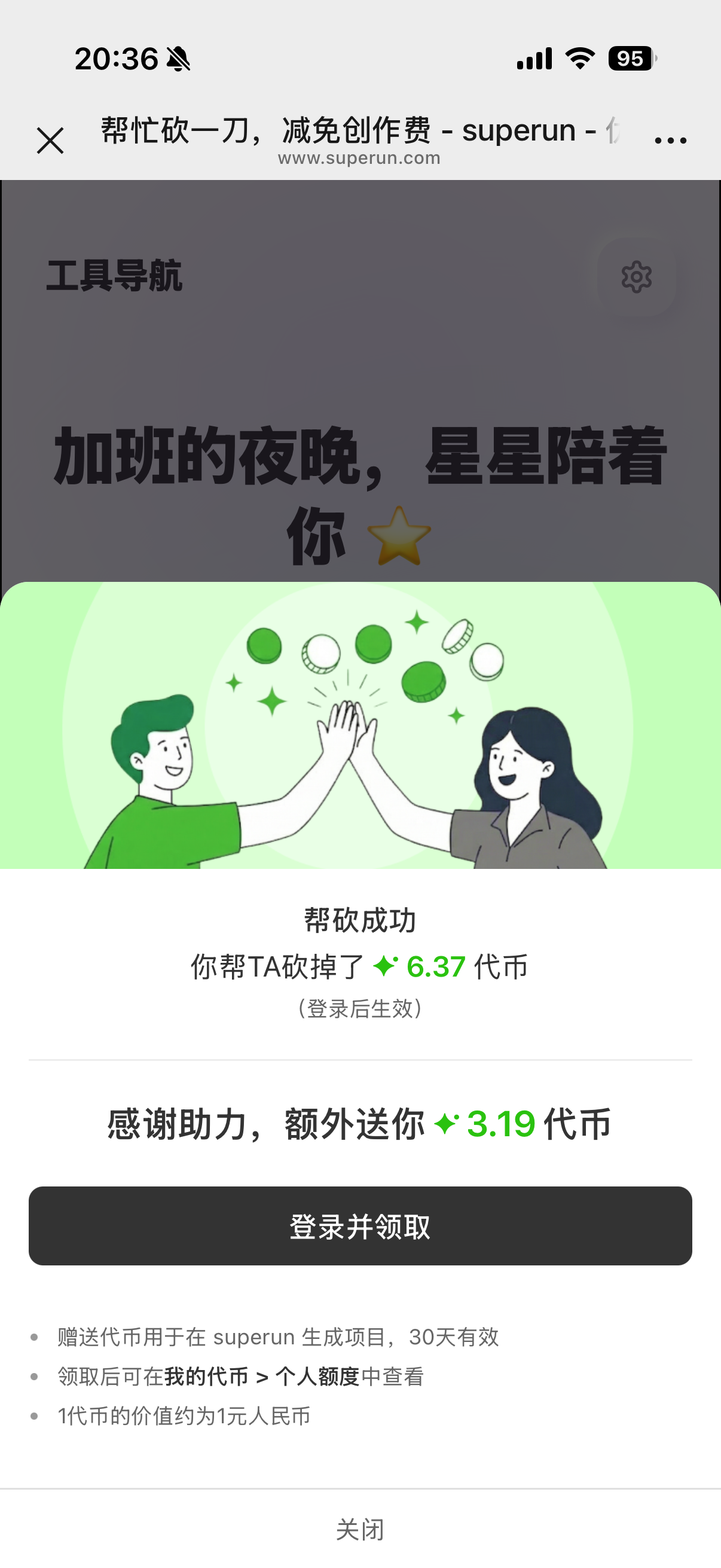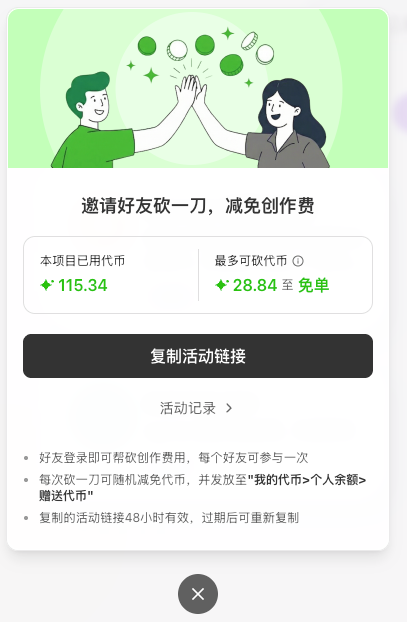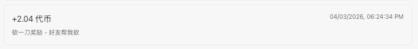 - 在 我的代币 → 个人余额 → 赠送代币 中可查看砍一刀获得的代币明细